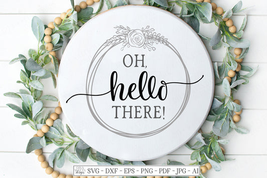 SVG | Oh Hello There | Cutting File | Farmhouse Rustic Wreath | Welcome Sign | Round Circle | Vinyl Stencil HTV | Door Mat | dxf eps png ai