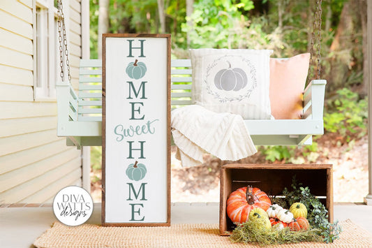 Home Sweet Home With Pumpkins | Fall Vertical Porch Sign Design