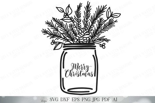 Christmas Mason Jar Arrangement SVG | Hand Drawn SVG | Christmas Floral Mason Jar SVG | dxf and more! | Printable