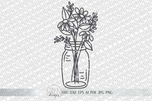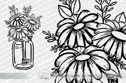 SVG | Mason Jar Floral Arrangement | Cutting File | Bouquet Wildflowers Daisies | Flowers | Farmhouse | Sign | Vinyl Stencil HTV | EPS png