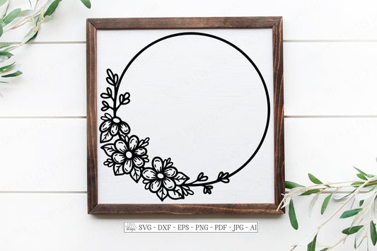 SVG | Rose Wreath | Cutting File | Farmhouse Rustic Vintage Floral Frame | Rose Daisy | Vinyl Stencil HTV | Pillow Tea Towel Sign dxf eps