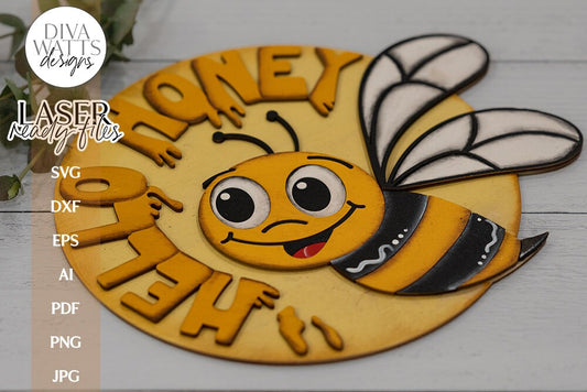 Hello Honey Glowforge Laser SVG | Bumble Bee Door Hanger Design