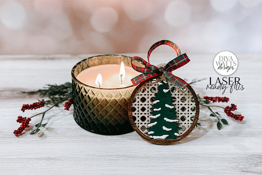Christmas Boho Rattan Ornament Glowforge SVG Set | 6 Winter Tree Designs