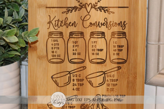 Glowforge Kitchen Conversions Chart | Kitchen SVG | dxf and more