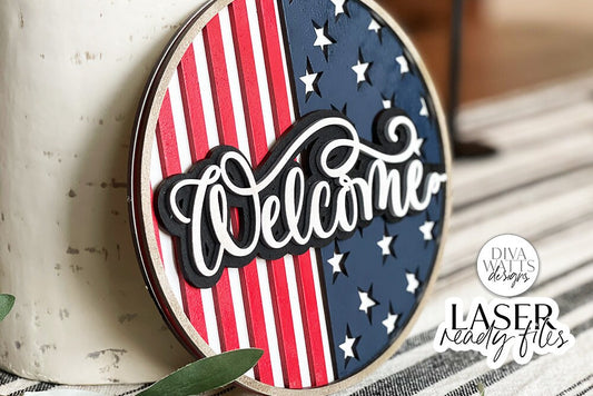 Welcome SVG for Glowforge | Patriotic 4th of July Round Sign Design