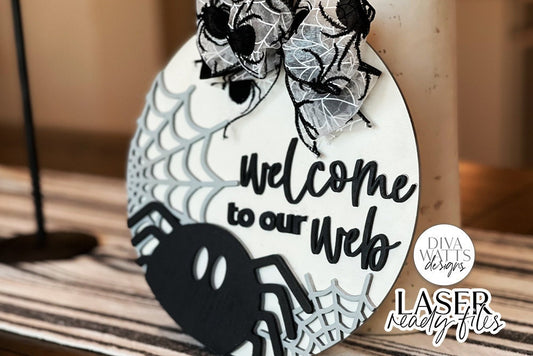 Welcome To Our Web Glowforge SVG | Halloween Spider Round Sign