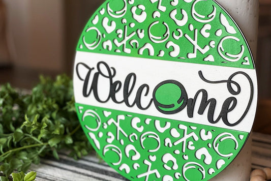 Welcome with Hockey Leopard Print Glowforge SVG | Laser Cut File