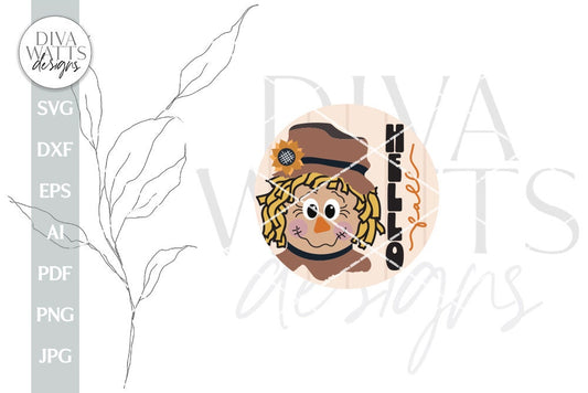 Scarecrow SVG For Fall Scarecrow Door Hanger SVG For Fall Front Porch Sign Hello Fall Round Sign SVG For Vinyl Scarecrow Sign svg