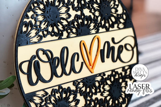 Welcome SVG for Glowforge | Sunflower With Heart Laser Design
