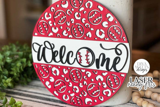 Welcome with Baseball Leopard Print Glowforge SVG | Laser Cut File