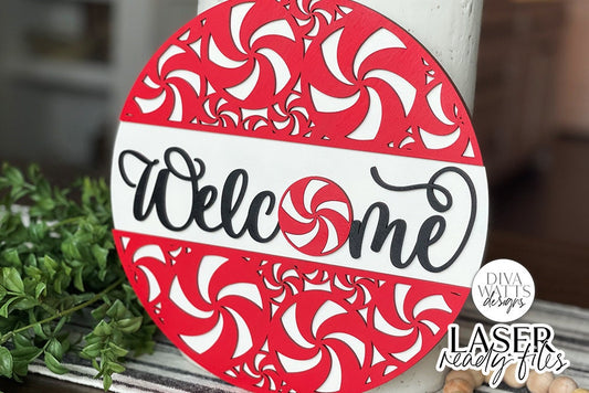 Welcome Peppermint Glowforge SVG | Christmas & Winter Door Hanger Design