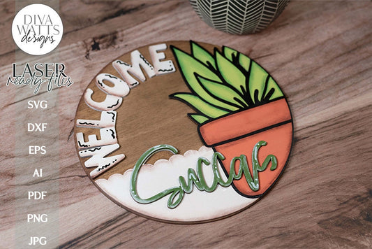 Welcome Succas Laser SVG | Glowforge Round Door Hanger Design