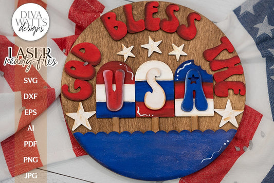 God Bless The USA Laser SVG | Patriotic Home SVG for Glowforge | 4th of July Round Sign Design