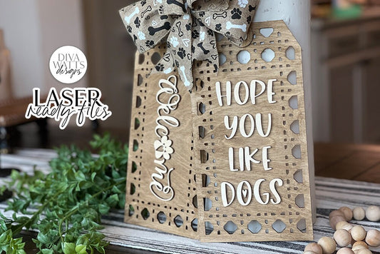 Welcome Rattan Door Tags Glowforge SVG | Hope You Like Dogs Laser Design