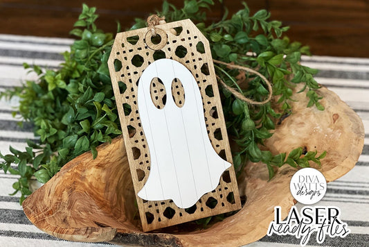 Halloween Ghost Rattan Tags Glowforge SVG | Fall Design