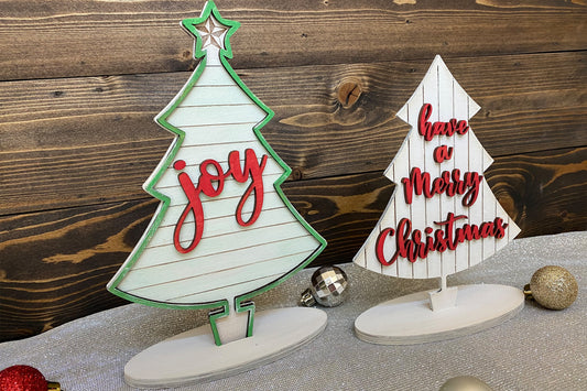 Shiplap Christmas Trees Laser Cutting File | SVG | Glowforge Tree with Stand | Merry Christmas | Joy | Vertical & Horizontal Shiplap