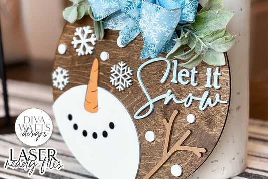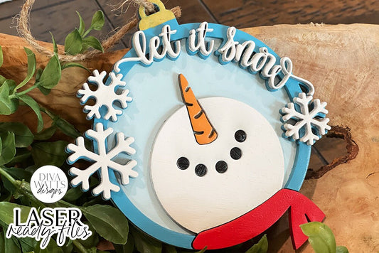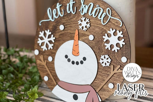 Let It Snow Glowforge SVG | Christmas Snowman Round Laser Cut File