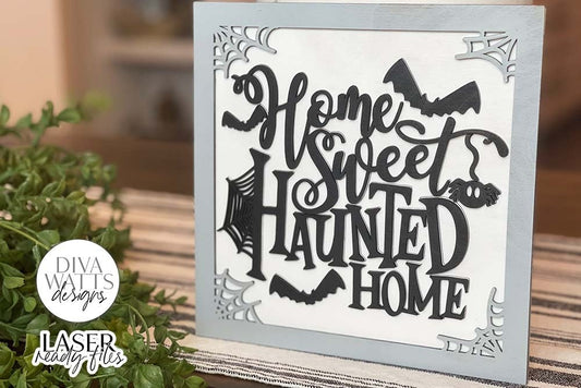 Home Sweet Haunted Home Glowforge SVG | Halloween Sign Laser File