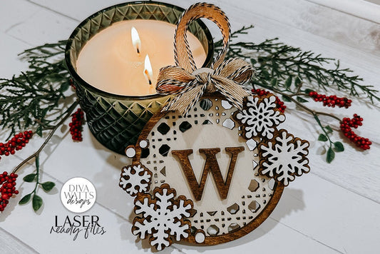 Snowflake Boho Rattan Monogram Ornament for Glowforge | Laser Design