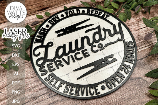 Laundry Room Laser SVG | Glowforge Farmhouse Round Sign Design | DXF and More