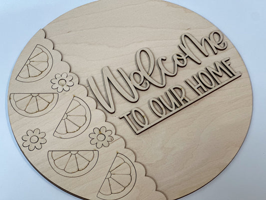 Welcome To Our Home Glowforge SVG | Round Citrus Fruit Sign | Lemons Limes Oranges | Door Hanger