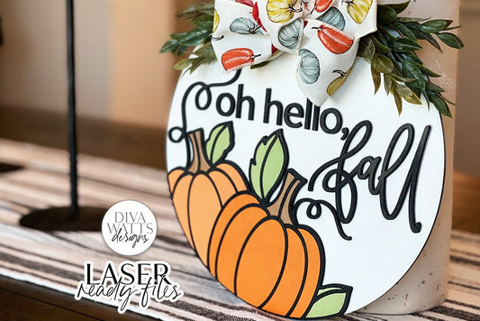 Oh Hello Fall Glowforge SVG | Autumn Pumpkins Laser File