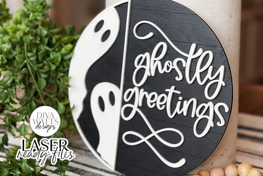 Ghostly Greetings Glowforge SVG | Halloween Laser File