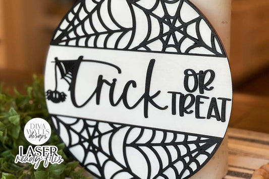 Trick Or Treat Glowforge SVG & Lasers | Halloween Round Design