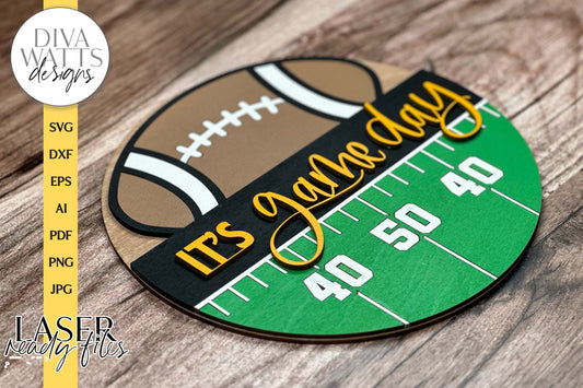 It's Game Day LASER SVG | Football Door Hanger Design | 50 Yard Line | Glowforge Laser File
