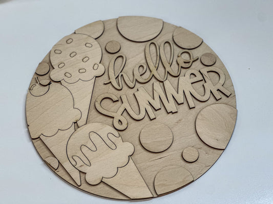 Hello Summer Glowforge Laser SVG | Ice Cream Cones Door Hanger Design