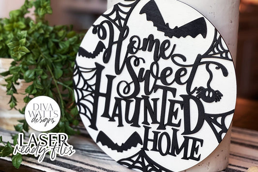Home Sweet Haunted Home Glowforge SVG | Halloween Round Sign Design