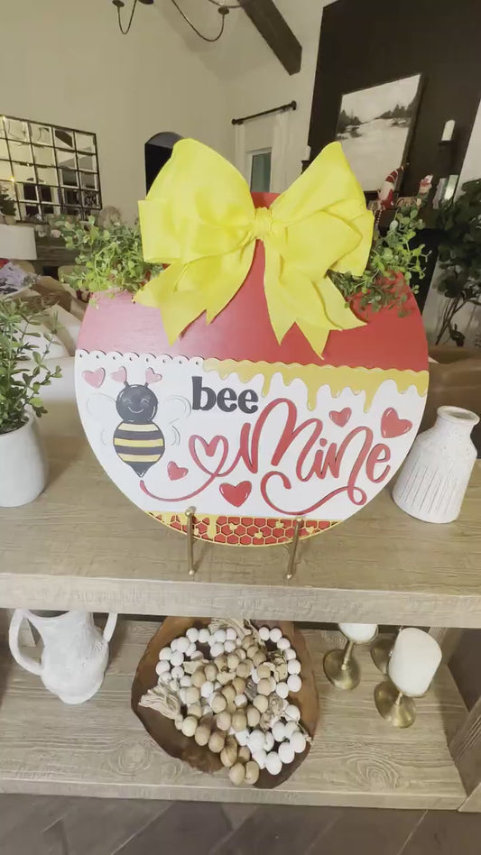 Bee Mine Valentine's Day SVG Laser Cut File, Honeycomb Door Hanger Template, Round Sign Design, Glowforge & Xtool Compatible