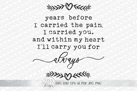Child Loss Quote SVG | Years Before I Carried The Pain I Carried You | Memorial SVG | dxf and more