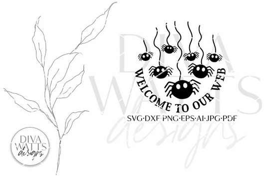 Welcome To Our Web SVG | Halloween Dangling Spiders Design