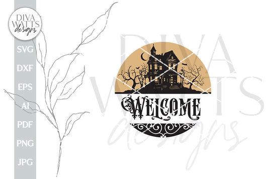 Welcome SVG Haunted House Door Hanger svg Haunted svg Spooky Halloween svg Halloween Door Hanger svg For Halloween Sign SVG Halloween Decor
