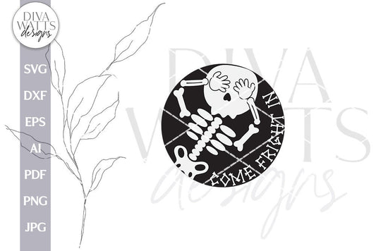 Come Fright In SVG For Halloween Door Hanger SVG Skeleton Sign Front Door Sign Halloween Skeleton SVG Cute Door Hanger Sign For Halloween