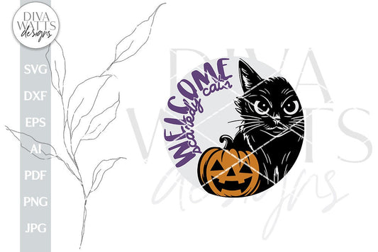 Welcome Scaredy Cats SVG For Halloween Door Hanger With Black Cat SVG Front Door Sign For Halloween Decor Black Cat With Pumpkin SVG