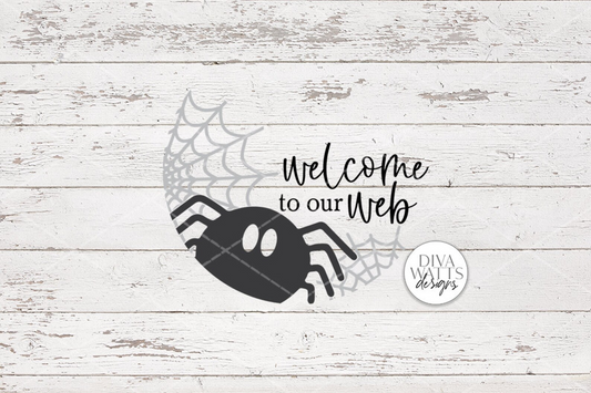 Welcome To Our Web | Halloween Spider Round Sign Design