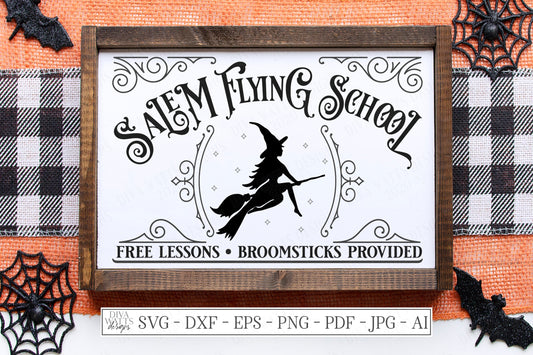 Salem Flying School SVG | Halloween Sexy Witch Sign Design | Farmhouse Style Decor