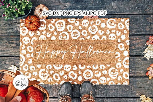 Happy Halloween Skull & Leopard Print SVG for Doormat / Welcome Mat