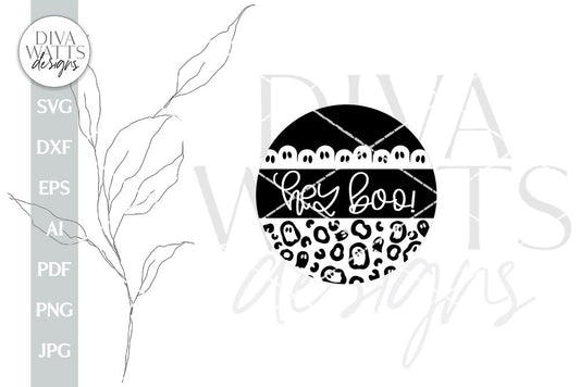 Hey Boo SVG Halloween Ghost Door Hanger SVG Ghost Front Door Sign Ghost SVG Halloween Leopard Print svg Ghost Halloween svg Front Door Sign