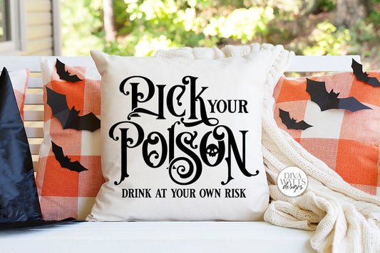 Pick Your Poison SVG | Drink At Your Own Risk Halloween Typography Design