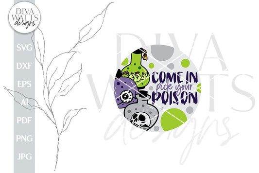 Come In Pick Your Poison SVG Halloween Welcome Door Hanger SVG Poison Bottles Halloween Sign Pick Your Poison Halloween SVG For Door Hanger