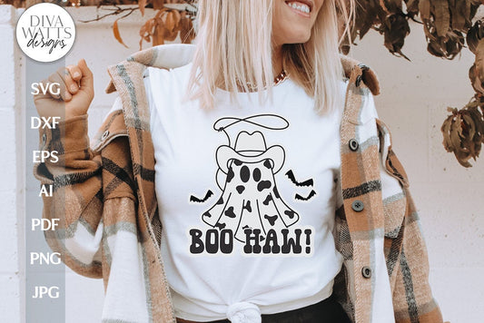 Boo Haw SVG For Halloween Cowboy Ghost With Rope And Bats SVG Halloween Ghost Western Ghost SVG For Shirt Funny Halloween Ghost svg