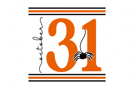 October 31 with Spider Date Sign | Cutting File | DXF SVG and More! | Halloween | Fall | Autumn | Stripes Grainsack