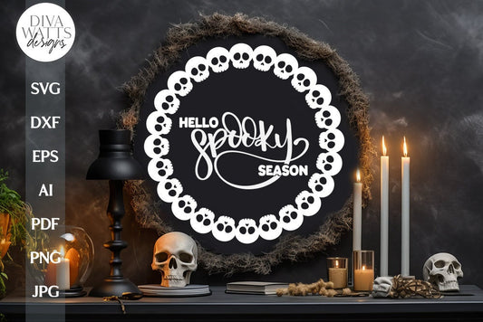 Hello Spooky Season SVG Halloween Door Hanger Halloween Skull SVG Spooky Halloween Door Hanger SVG For Halloween Skull Cut File For Sign