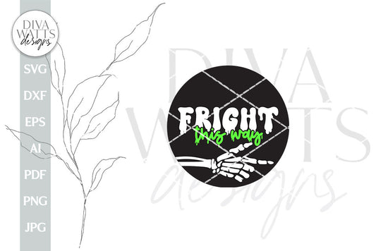 Fright This Way SVG Halloween Door Hanger SVG Skeleton svg For Halloween Sign Fright This Way Cut File Cricut Halloween Front Porch Sign SVG