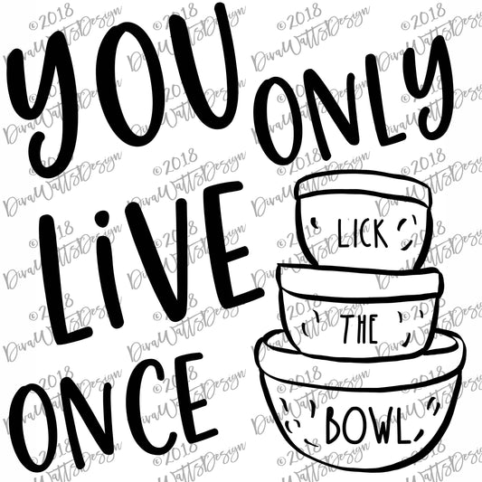 SVG You Only Live Once Lick The Bowl | Kitchen Wall Towel Art | Farmhouse Style Inspired Bowls & Skinny Font | Instant Download