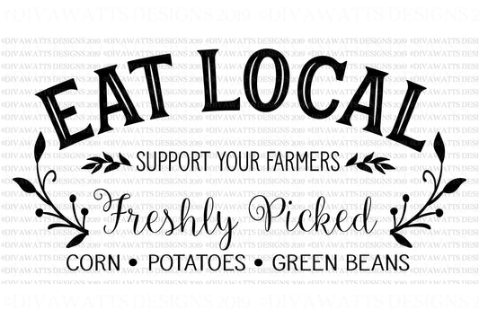 SVG | Eat Local | Cutting File | Support Your Farmers | Freshly Picked | Corn Potatoes Green Beans | PNG eps jpg pdf | Vinyl Stencil HTV