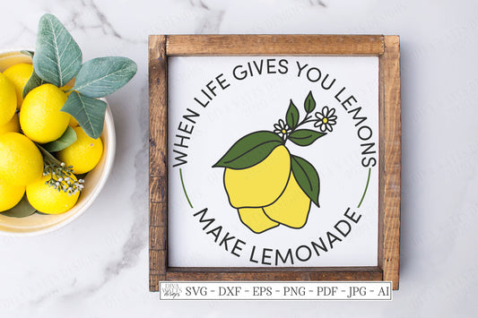 SVG | When Life Gives You Lemons Make Lemonade | Cutting File | Summer Spring Round Circle Farmhouse Sign | Vinyl Stencil HTV DXF | Kitchen